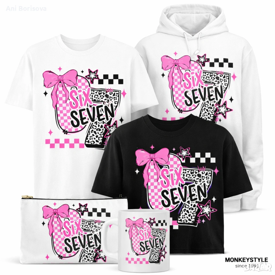 Предлагам детски тениски и суитшъри с дизайн SIX SEVEN / 67. Подходящи за ежедневие, подарък или рожден ден.