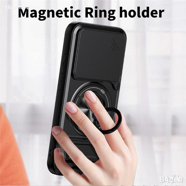Тип: Магнитен калъф с пръстен, стойка и капаче за камера