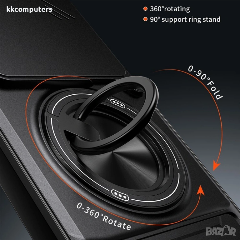Ключови функции: 360° въртящ се пръстен, Сгъваема стойка, Плъзгащо се капаче за камера, Вграден магнитен пръстен, Двупластова защита