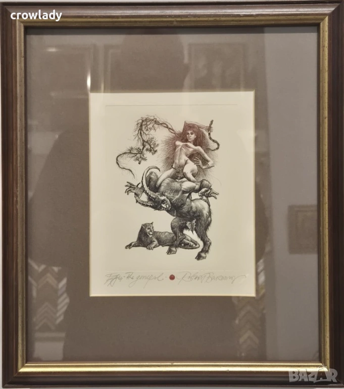 Оформено в стилна дървена рамка. Стъкло и паспарту.