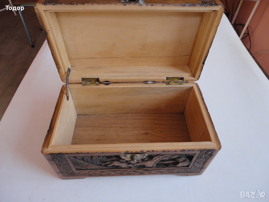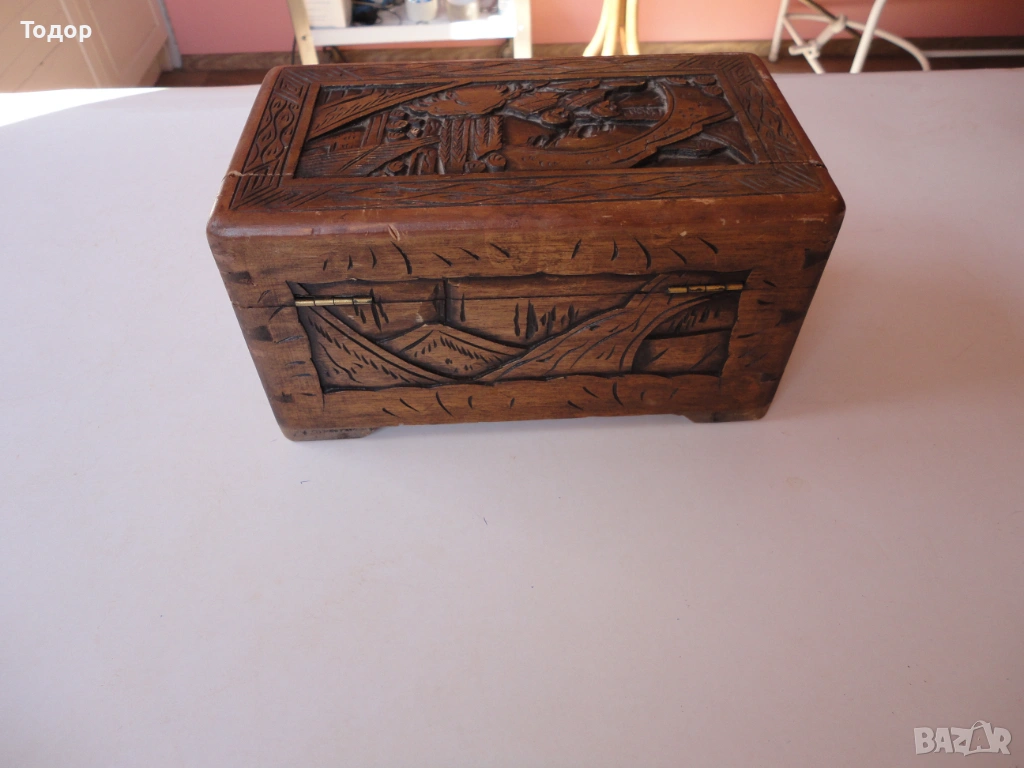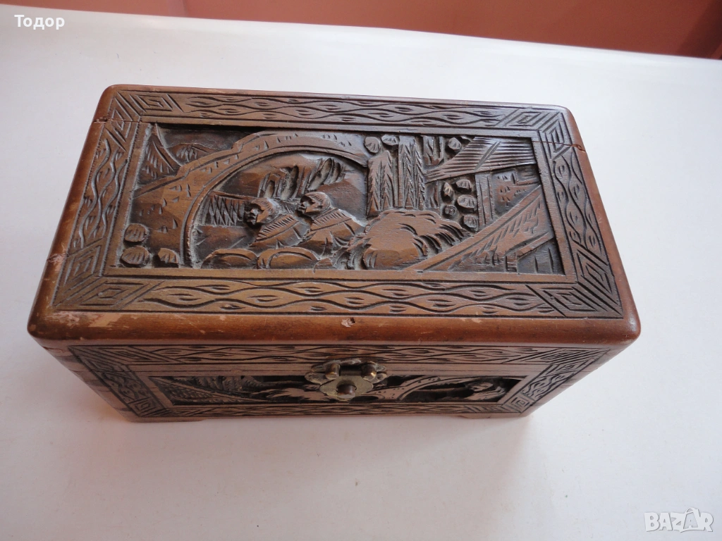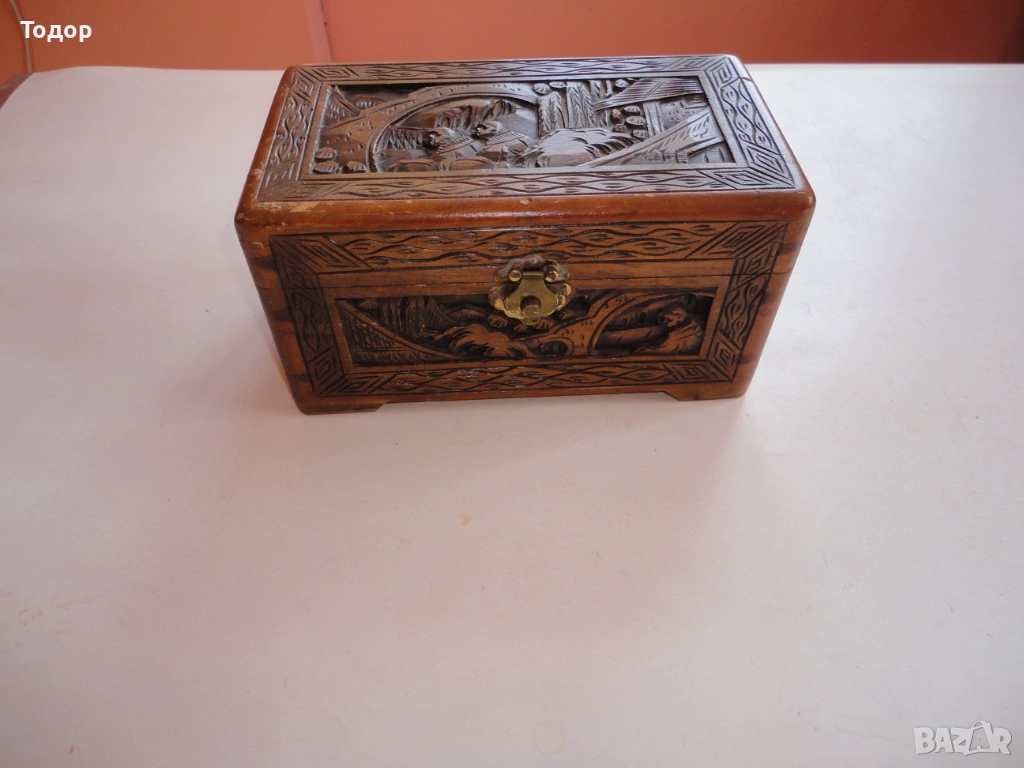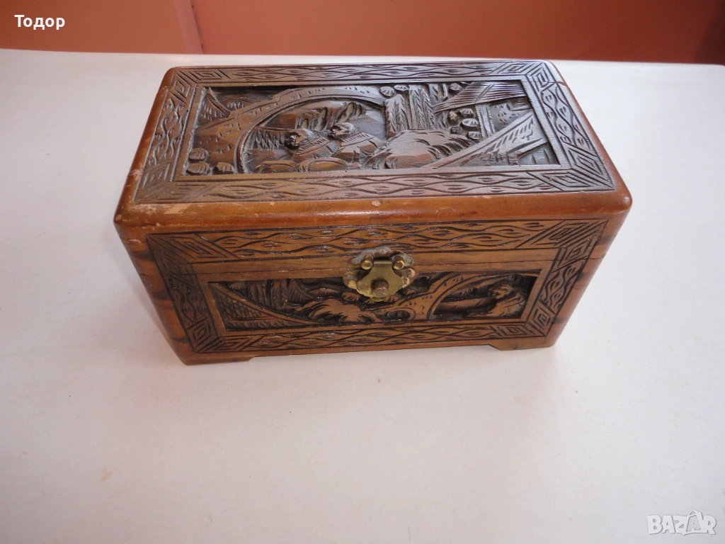 Старинно дървено сандъче ковчеже кутия дърворезба → Обява 54087576