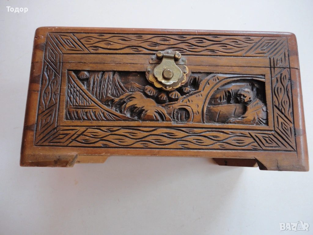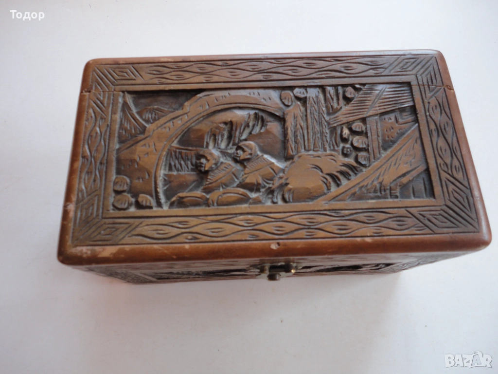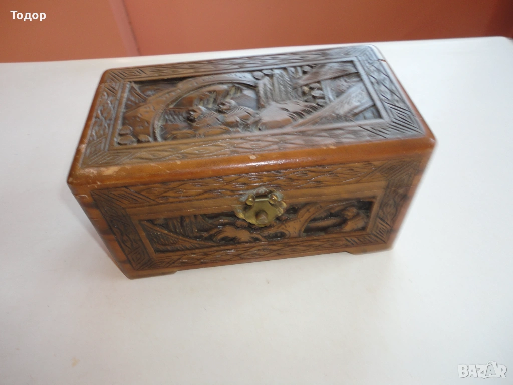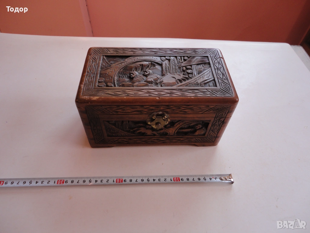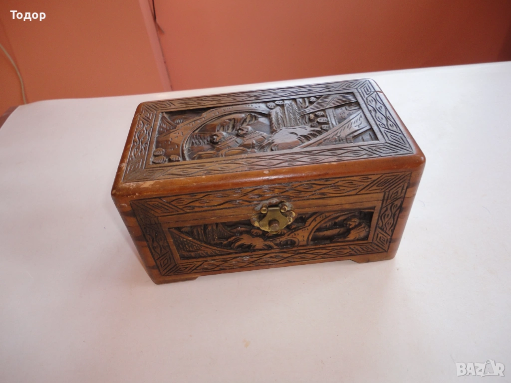 Старинно дървено сандъче ковчеже кутия дърворезба → Обява 54087576