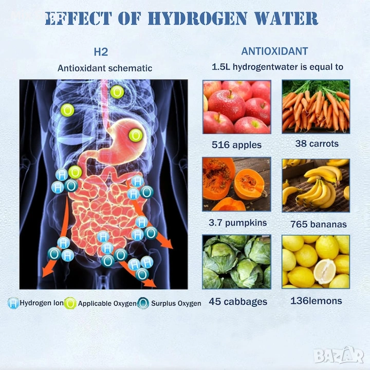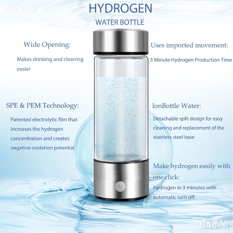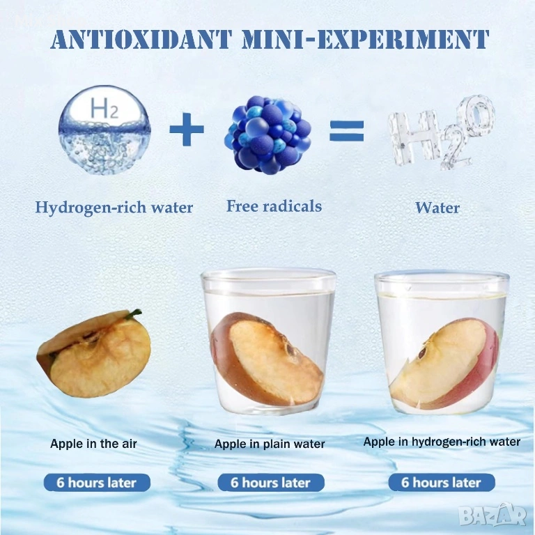 【Страхотен подарък】: Богатата на водород вода ще поддържа артериите ви чисти и също така ще забави процеса на стареене. Стимулира метаболизма, помага за подобряване на качеството на съня и борбата с възпаленията. Дългосрочната консумация помага за облекчаване на мускулните болки и намаляване на физическата умора след тренировка, което го прави чудесен подарък за семейството и приятелите.