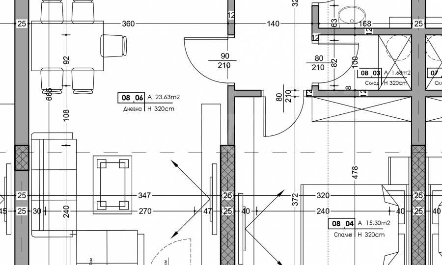 светла височина на апартаментите от 1 до 3 етаж - 2,80 м;