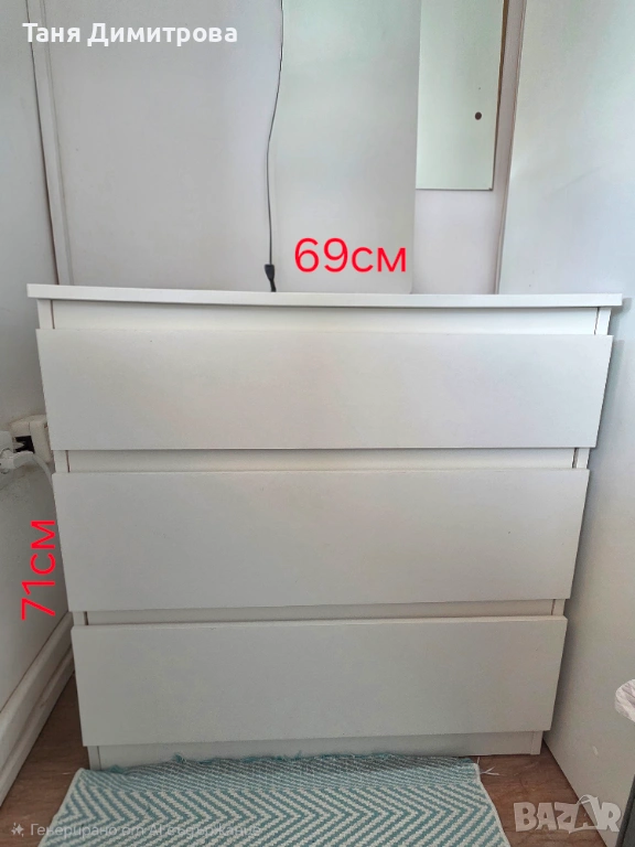 Бял скрин с три чекмеджета. Подходящ за съхранение на дрехи, бельо или други вещи. Размерите са :