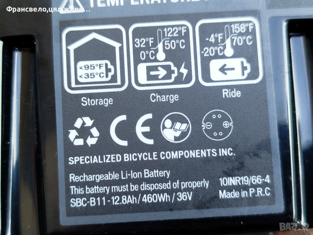 Батерия за електрически велосипед колело състояние незнайно → Обява 54087719