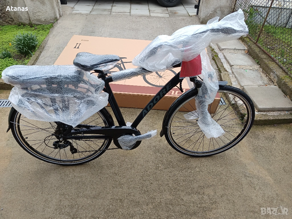 Велосипедите са чисто нови. Произведени са за немския пазар. Моделът е Adore E-Citybike Versailles 28" schwarz . Цената е 599 евро!!! Могат да тестват на място.