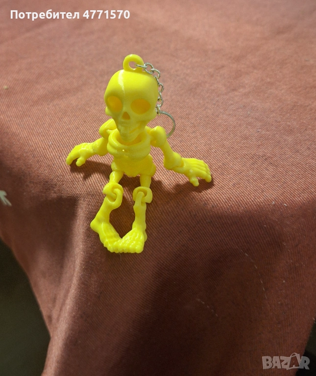 Забавен ключодържател скелет, направен на 3D принтер. По желание, може да се изтаботи в червен, зелен, бял, черен цветове.