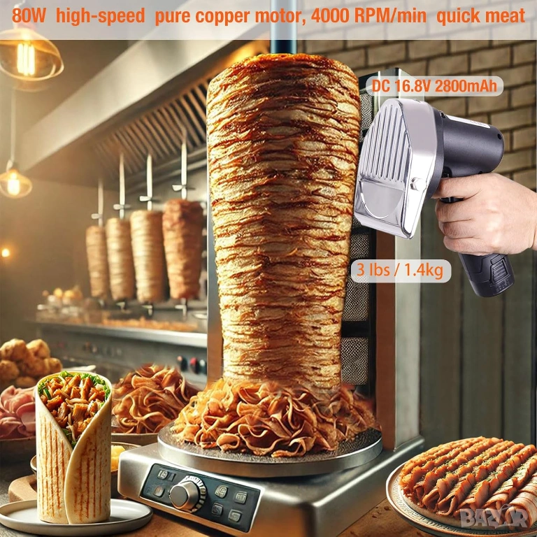 Професионален нож за дюнер кебап, с батерия, безжична, резачка за дюнер месо, машина за рязане