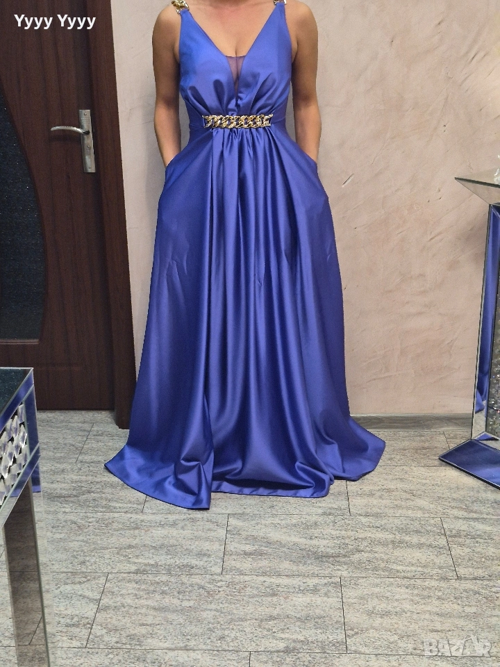 Елегантна дамска рокля в син цвят. Идеална за специални събития и ежедневието.Размер М- 40