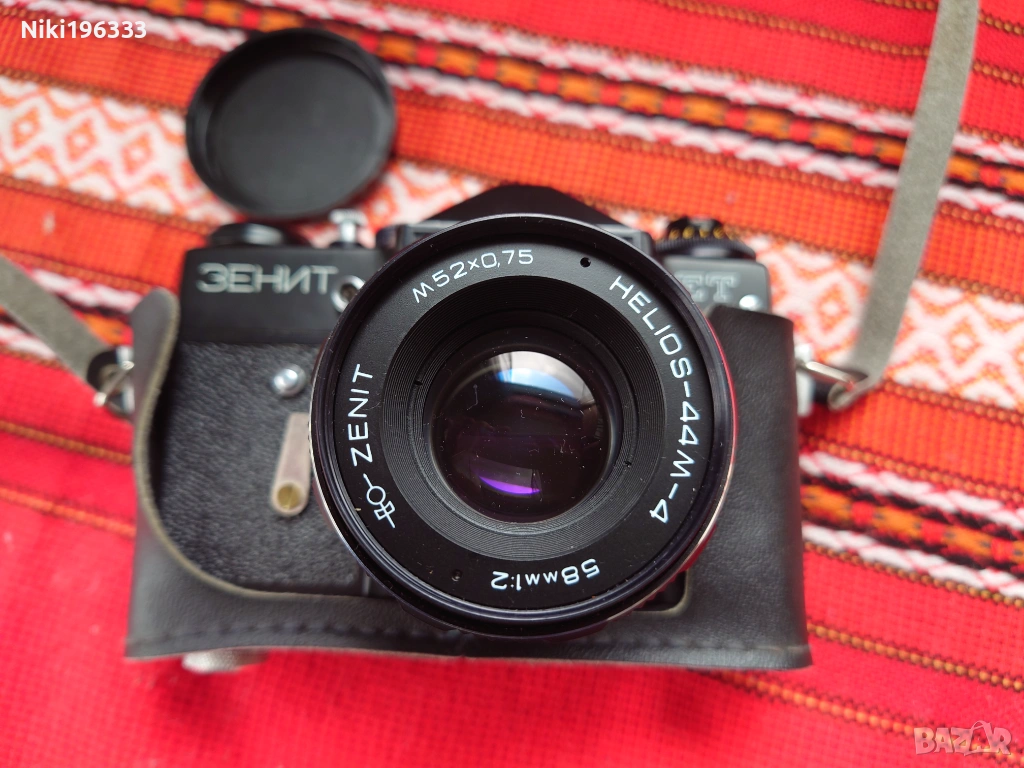 Продавам комплект за ценители на лентовата фотография: фотоапарат Зенит ET в отлично състояние, окомплектован с един от най-добрите съветски обективи - Helios-44M-4.