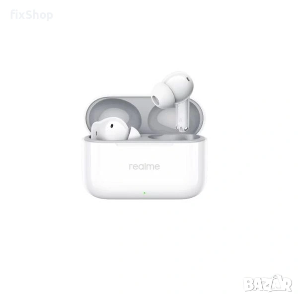 Оригинални Realme Buds T200 в бял цвят. Леки, удобни и с AI шумопотискане, мощен бас и дълъг живот на батерията.