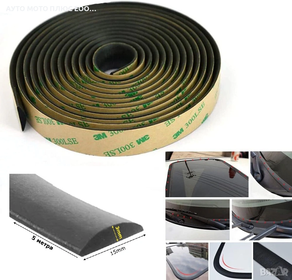 Самозалепващо гумено уплътнение за автомобил - 15мм х 5 метра.