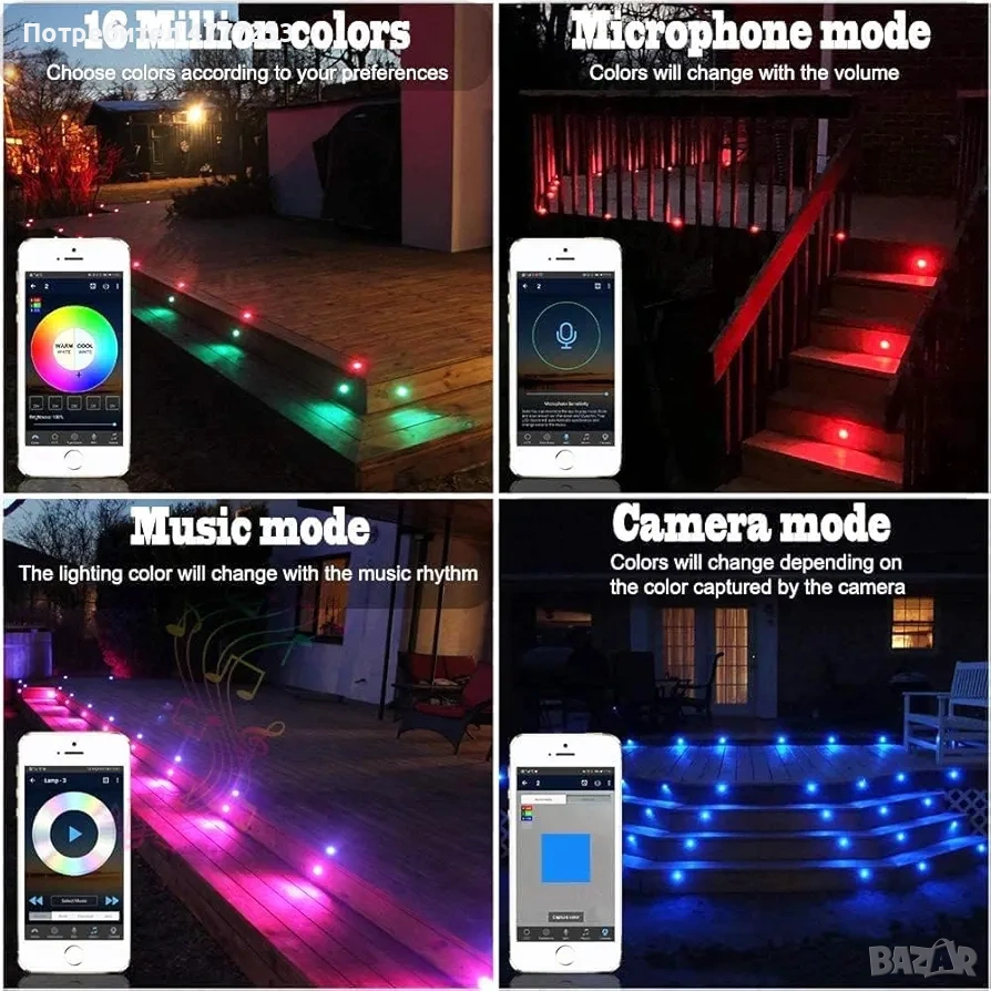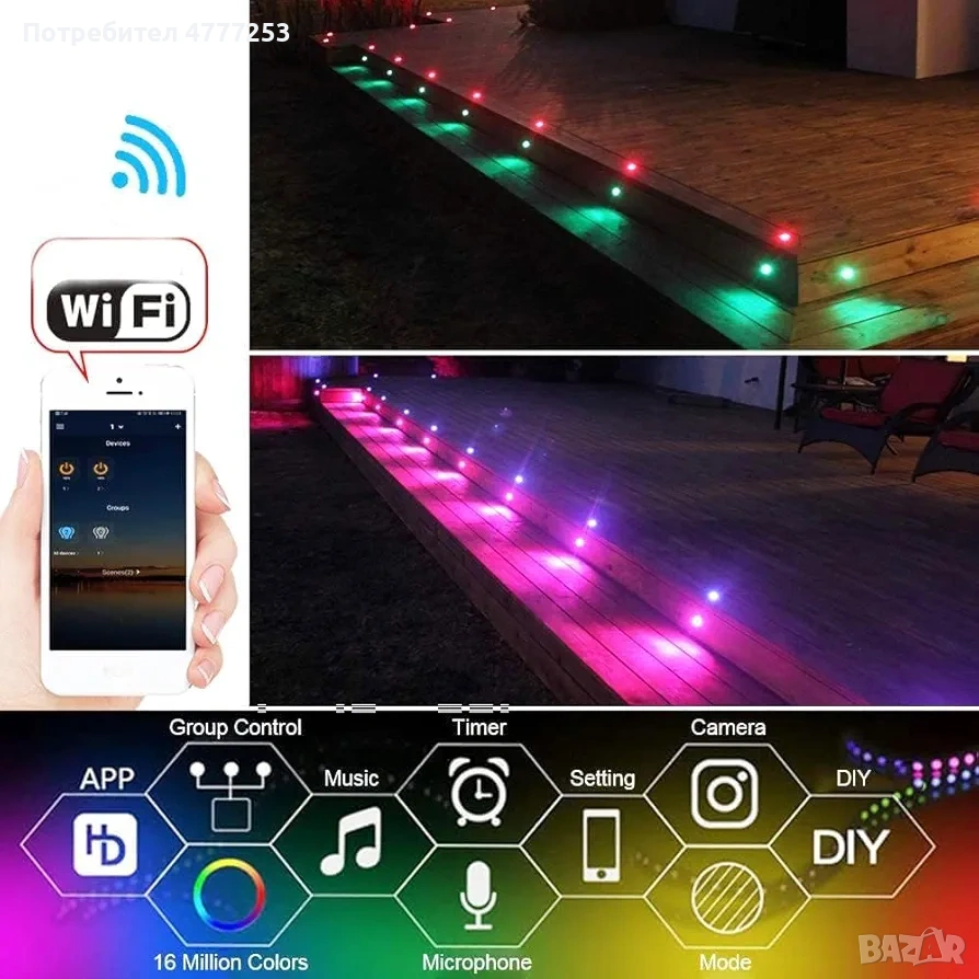 Можете да регулирате яркостта, цвета и скоростта на мигане на светлините чрез контролера или приложение, 16 милиона цвята, настройка на музиката, регулируема яркост, функция на таймера, музикален режим ,съвместим с Alexa (ECHO).Можете също да използвате 24-бутонното инфрачервено дистанционно управление.