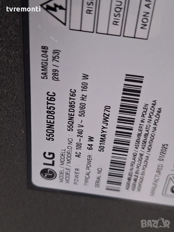 POWER BOARD ,EAY65895417,LGP55S-23UL6 ,for LG модел 55QNED85T6C 55inc DISPLAY HC550EQH-ABBA1-A144 борда е гарантирано работещ Демонтиран от Телевизор LG модел 55QNED85T6C със счупен дисплей HC550EQH-ABBA1-A144