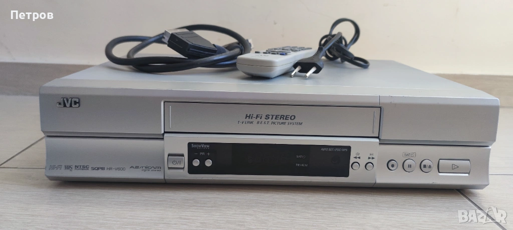Видео JVC VHS модел HR-V600 работещо чудесно в комплект с кабели и дистанционно.