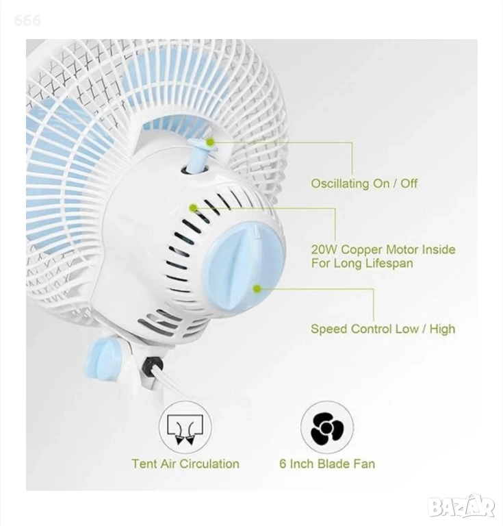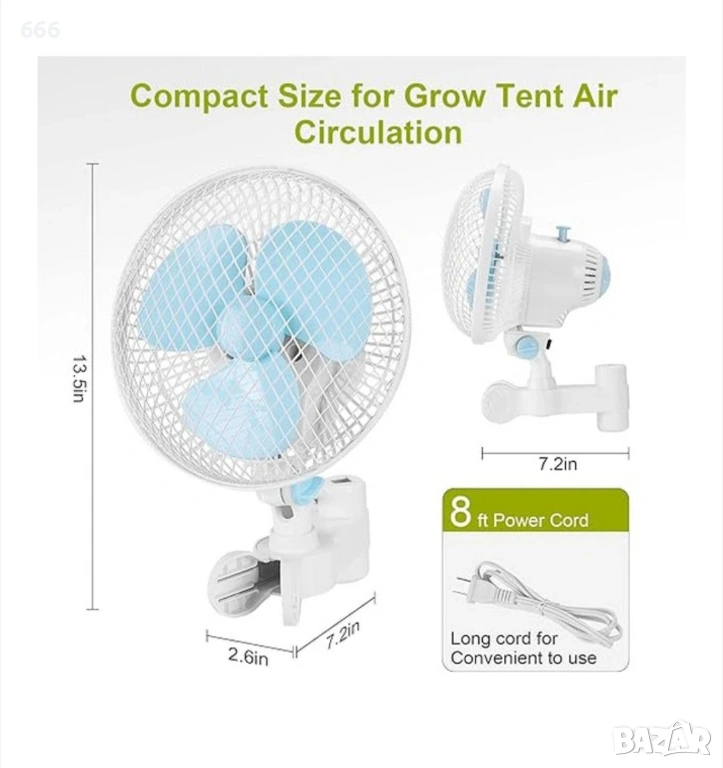 ЗА ПАЛАТКА ЗА КУЛТИВИРАНЕ: вентилатор със щипка, специален дизайн за стълбове на палатка за отглеждане от 0,59 до 1 инч, лесен за инсталиране. Здравата скоба може здраво да захване пръта и да не се плъзга. Лесен за почистване, капакът на вентилатора и перките могат лесно да се отварят за почистване.