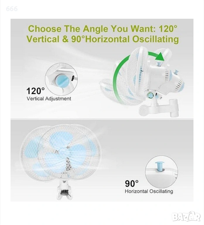 Вентилатор с щипка, осцилираща функция