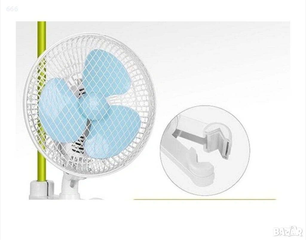 Вентилатор с щипка, осцилираща функция, 15,2 см лопатки, 20 W, 240 см кабел, диаметър на пръта 1,5 - 2,5 см, Blessny, бял.