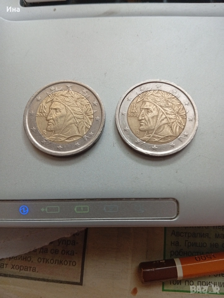 2 бр. монети х 2 евро от Италия сечени 2002 г. → Обява 54088896