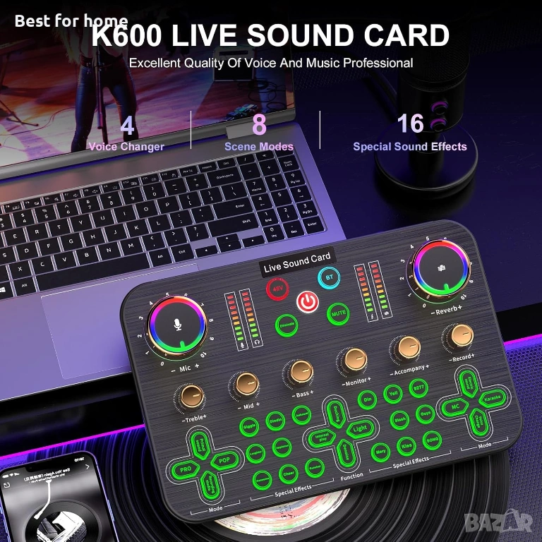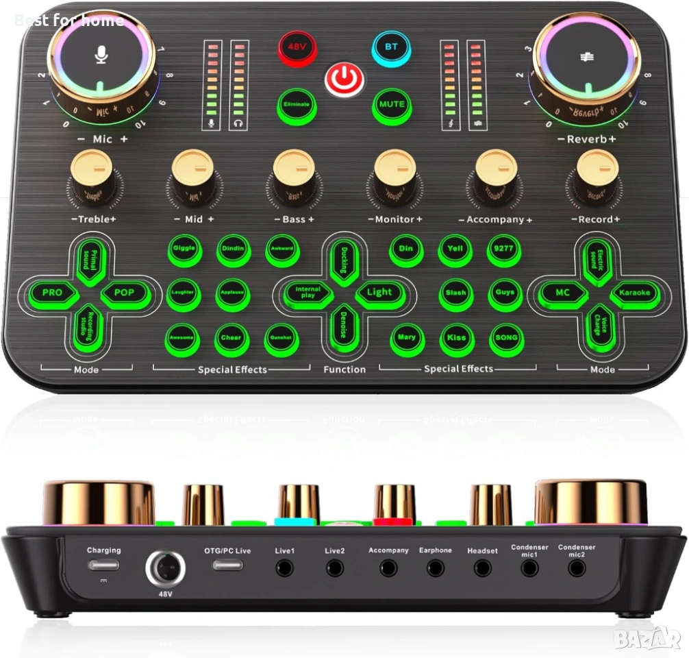 【Мощно оборудване за подкасти】-- DJ миксерът поддържа 8 сценични режима за повече поводи; 4 интересни гласови чейнджъра за промяна на гласа и стила ви; 16 вградени специални звукови ефекта за добавяне на забавни ефекти. Той също така поддържа стрийминг на живо, избягване с един бутон, акустично елиминиране, намаляване на шума, вътрешно възпроизвеждане, мониторинг в реално време и други. Привлечете и забавлявайте повече посетители, като добавите интересни елементи, за да привлечете вниманието на публиката по забавен и интерактивен начин.