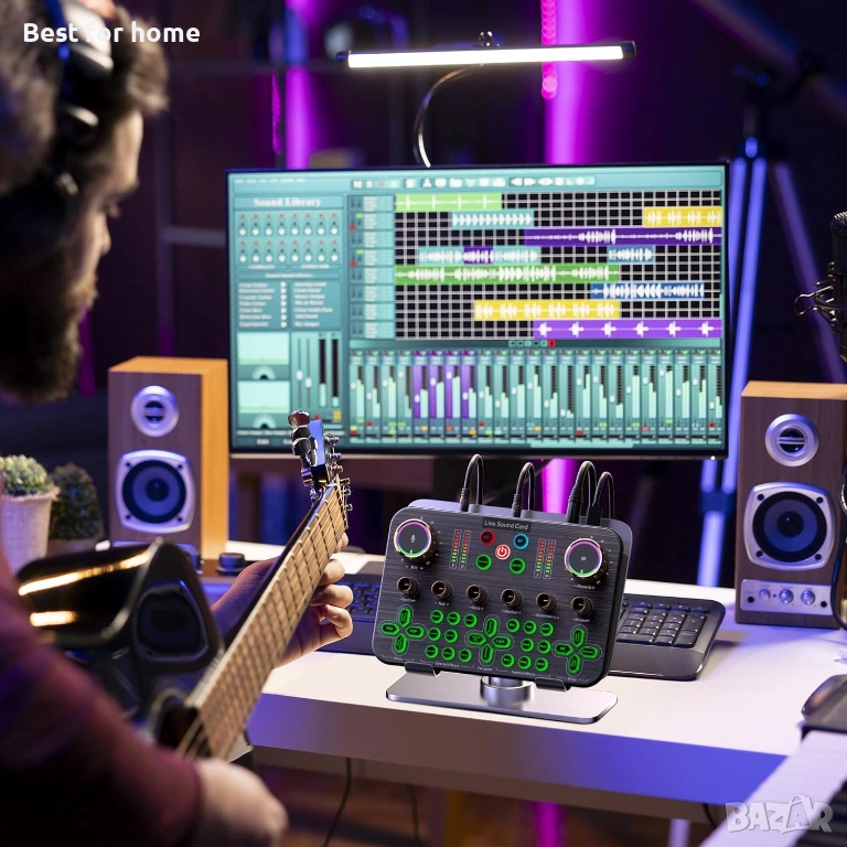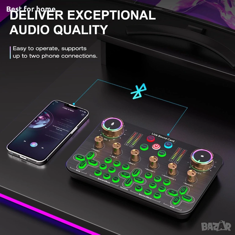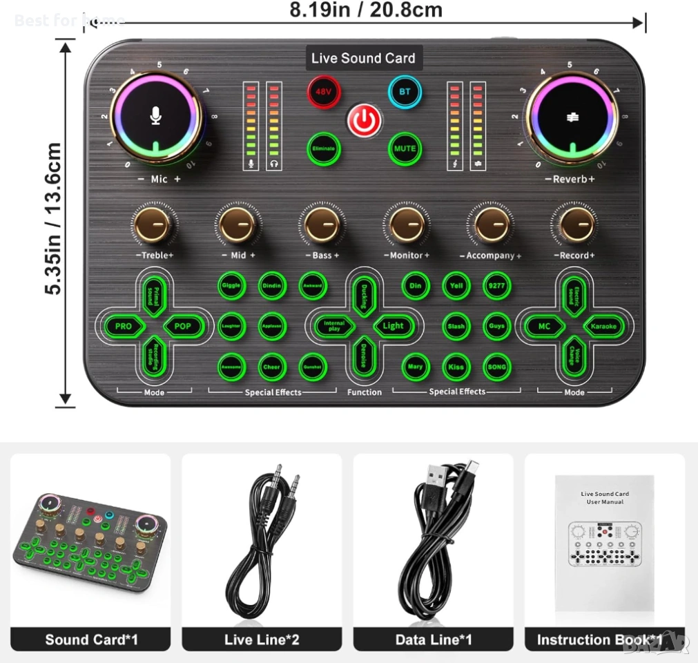 【Широки приложения】-- Този професионален аудио миксер използва OTG технология за предаване без загуби, за да избегне токов шум и да създаде по-високо ниво на качество на звука. Идеален за микрофонни студиа, запис в домашно студио, DJ миксери, запис на музика, китари, кондензаторни микрофони, караоке, подкастинг, стрийминг на живо, игри, TikTok, Facebook и YouTube стрийминг.