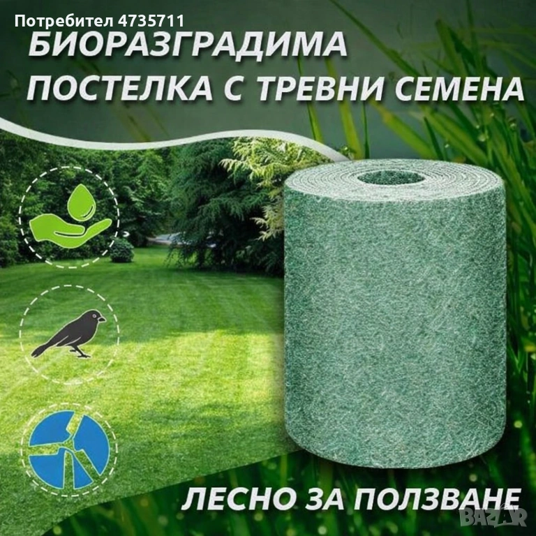 Подложка с тревни семена, биоразградима текстилна подложка, подрязваща се, наторена