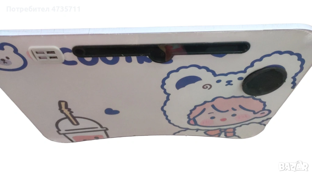 Мултифункционална сгъваема масичка с вградени 4 USB порта, LED лампа и вентилатор - идеална за лаптоп, таблет или хранене в леглото. Изработена от стабилно MDF дърво и алуминий, тя включва практична поставка за чаша и специален улей за таблет или телефон. С компактни размери 60х40х36 см, масичката е лесна за прибиране и се предлага в разнообразни цветове според наличността.