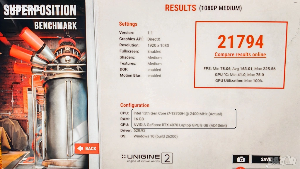 - Мощен процесор Intel Core i7 модел 13700H с пикова мощност до 115W с 14 реални ядра и общо 20 нишки, 24мб кеш.