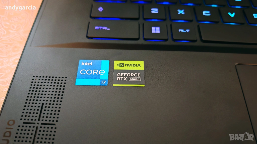 - Многоцветна клавиатура, метален капак на дисплея и долен капак, метален палмрест и солидни панти.
