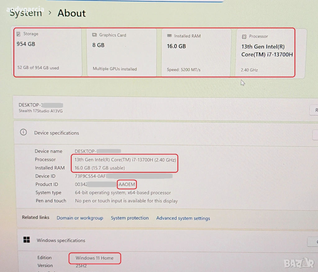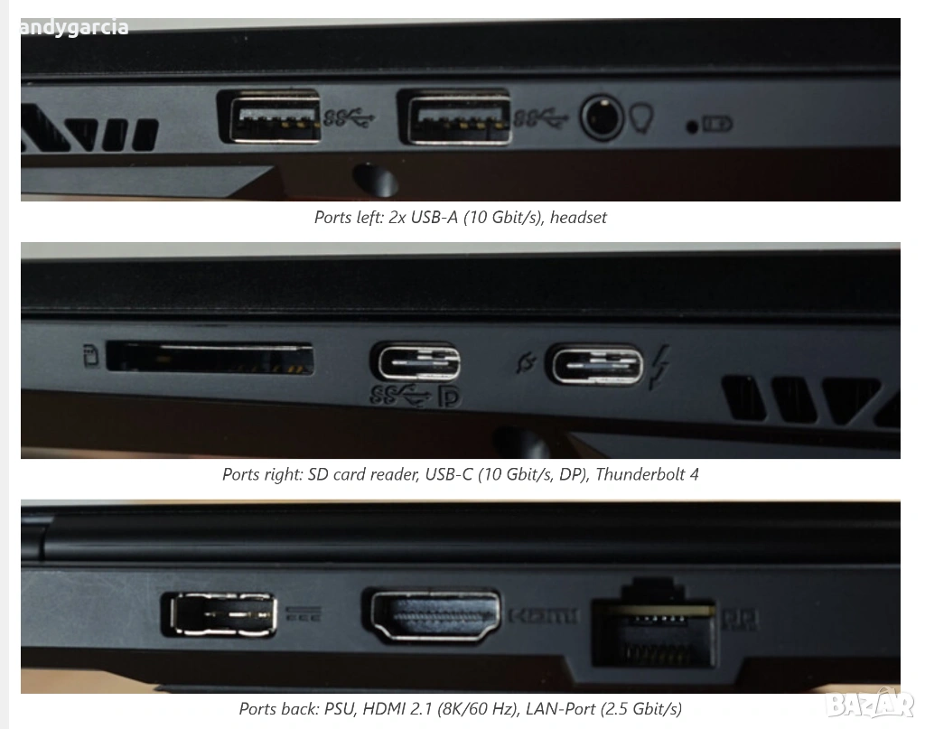 - Батерията е ОГРОМНА 99.9Wh, в отлично състояние и живот 4:00-5:00 часа и повече в зависимост от натоварването.