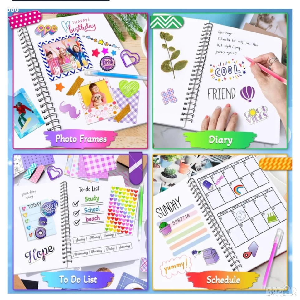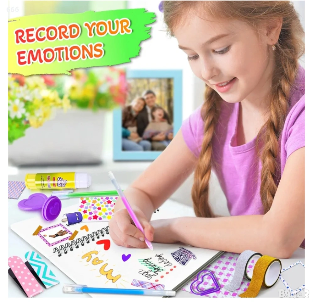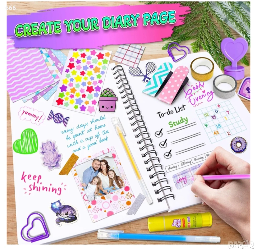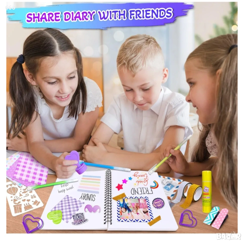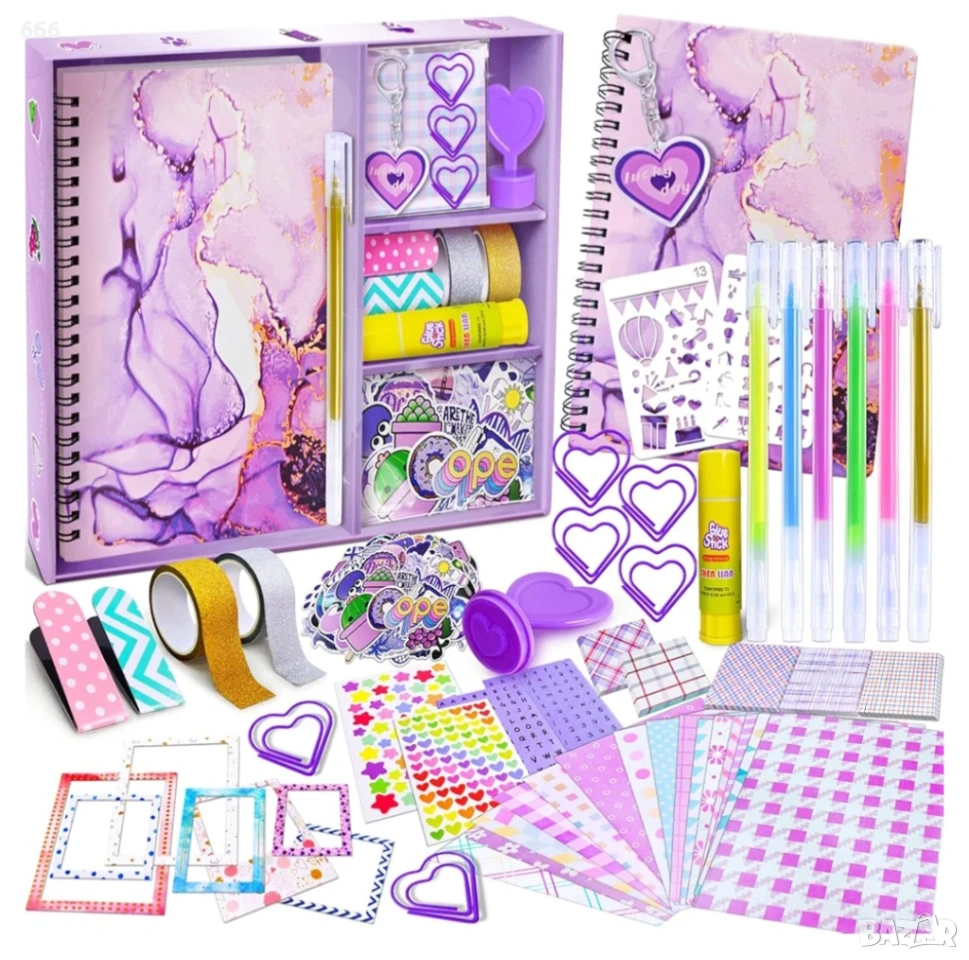 Комплект „Направи си сам“ за дневник: Този комплект „Направи си сам“, предназначен за момичета на възраст от 8 до 12 години, включва всичко необходимо за създаване на красив дневник.