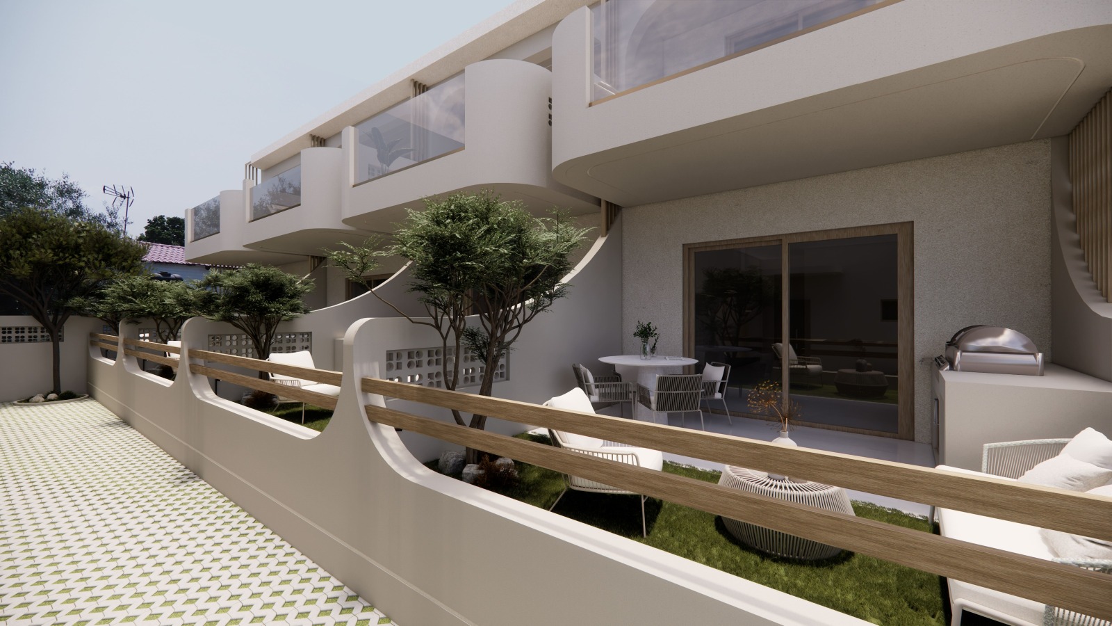 Частен вътрешен двор за всяка резиденция с озеленени околности.