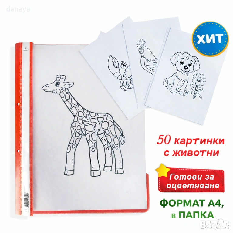 Листи за оцветяване с животни A4, детски картинки за оцветяване, комплект 50 страници в папка – най-лесният начин да ангажираш детето с нещо полезно, спокойно и истински увлекателно.