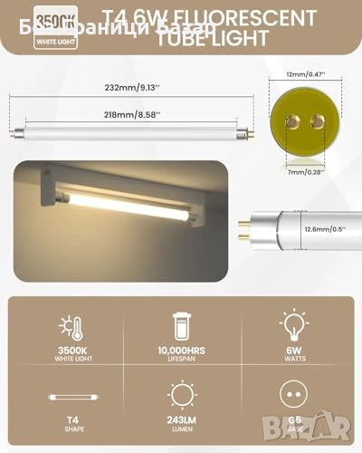 Нови 2 броя комплект Флуоресцентна Тръба T4 G5 6W 232мм Мека Бяла Светлина