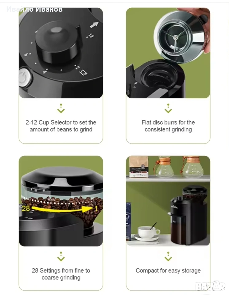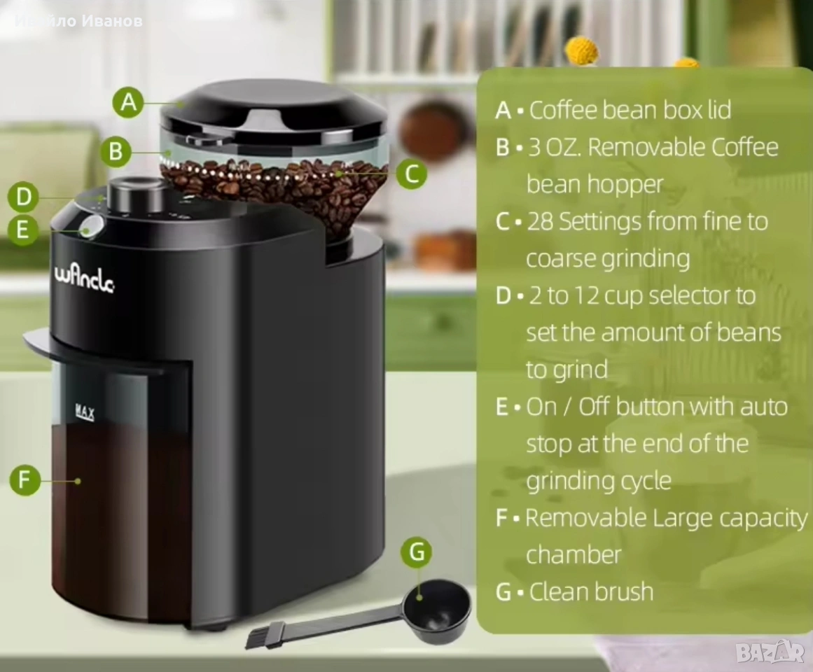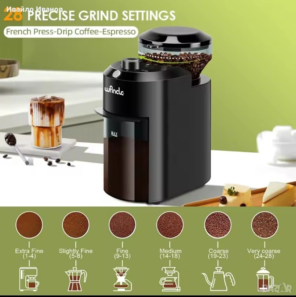 Електрическата кафемелачка Wancle е високопроизводителен уред, проектиран за постигане на перфектен резултат при смилане на кафе. Настройки за смилане: Предлага 28 прецизни настройки, вариращи от изключително фино за еспресо до едро за френска преса. Капацитет: Може да смели количество за 2 до 12 чаши кафе. Механизъм: Използва конични дискове (burr), които осигуряват равномерно смилане и запазват аромата на кафето, без да го прегряват. Удобство: Компактен дизайн с лесно почистване и тиха работа.