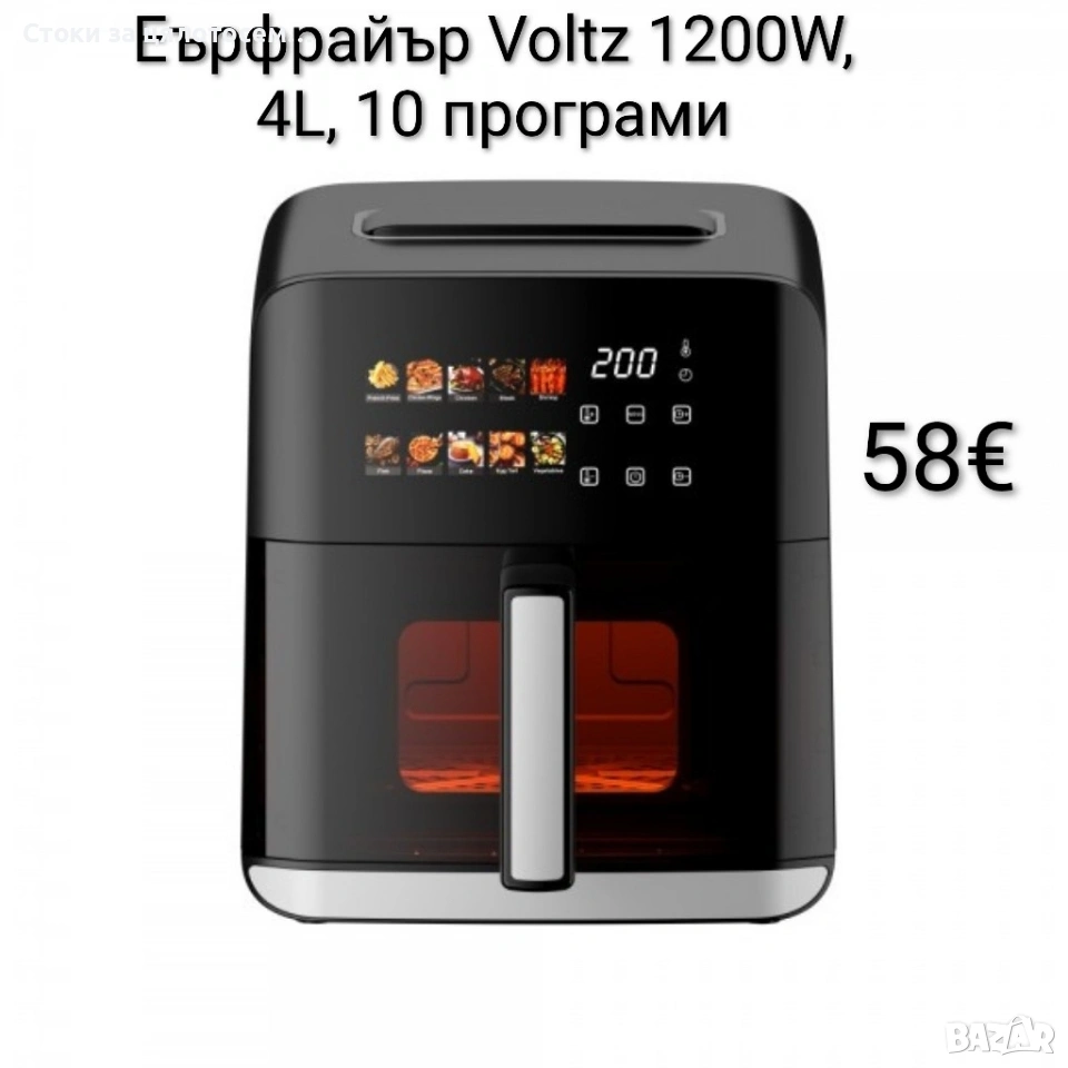 Еърфрайър Voltz 1200W, 4L, 10 програми → Обява 54089885