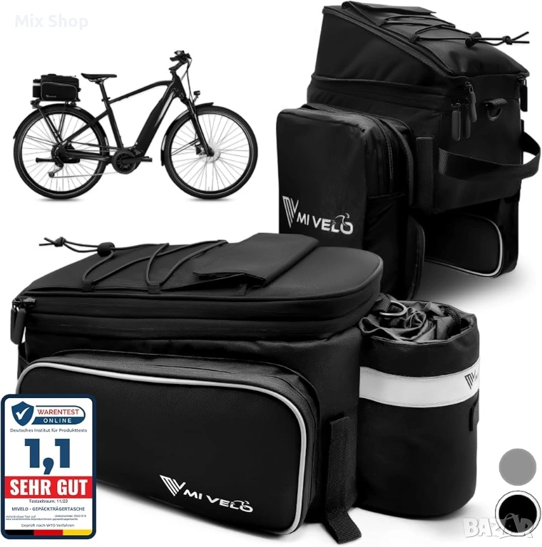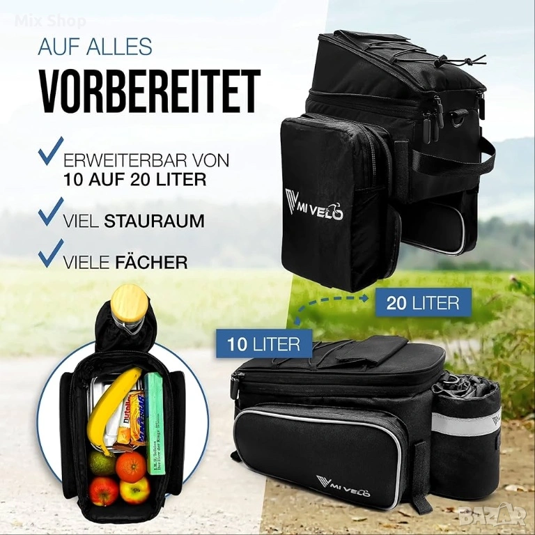 Нова Велосипедна чанта Mivelo за багажник с възможност за разширяване до 20 L, водоотблъскваща черна