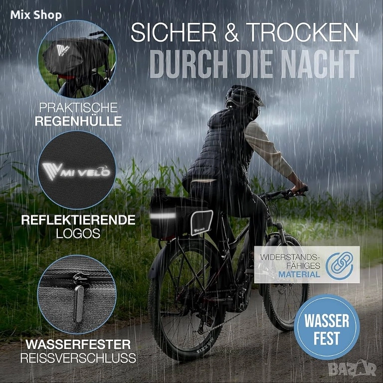 Практична и безопасна: Насладете се на свободата, докато карате колело, всичко необходимо е винаги с вас, багажът ви е защитен от влага благодарение на водоотблъскващия материал и винаги под ръка. За по-добра видимост в тъмното, чантата за велосипед е снабдена със светлоотразителни лога.