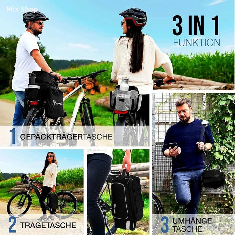 Практична и издръжлива: чантата за велосипед впечатлява със своя стилен, класически и иновативен дизайн и отлична изработка. Можете да използвате чантата като чанта за велосипед, чанта за носене и чанта за рамо. Просто изберете сами.