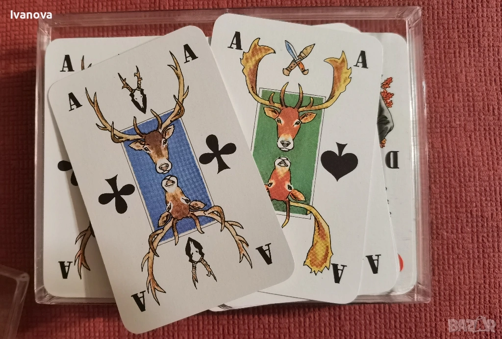 Колекционерски карти с ловни мотиви, Coeur Германия. В отлично състояние, 2 пълни тестета от 52 карти. Цената е за комплекта