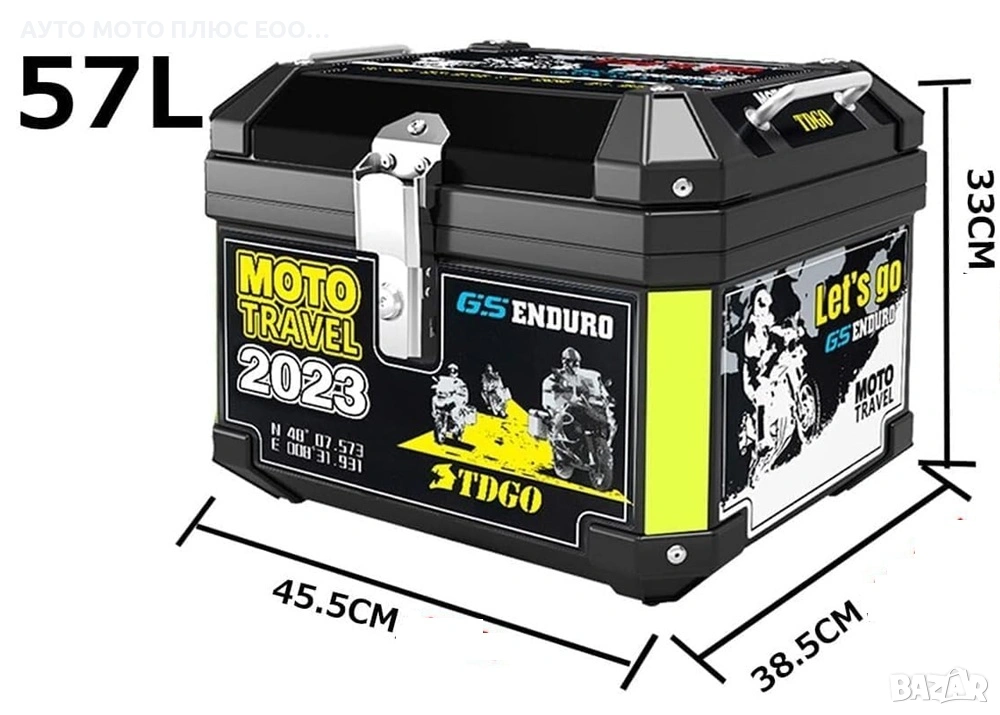 Функционален и издръжлив мото куфар с обем 57 литра, създаден да осигури максимално удобство и сигурност при транспортиране на багаж.
