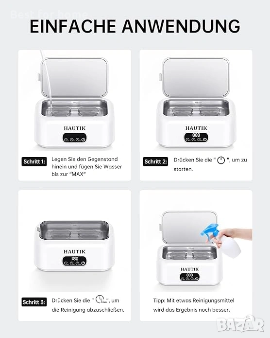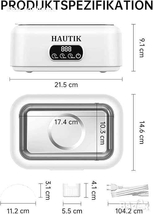 Лесна работа: Три режима на почистване - 180s, 300s, 600s. Просто стартирайте или спрете с натискане на бутон. След обратното броене и звуков сигнал, вашите очила и бижута ще блеснат отново.