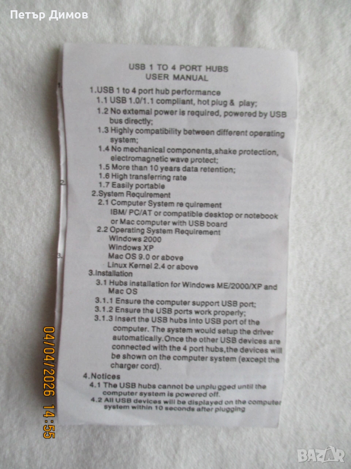 Продавам USB 1 to 4 port → Обява 54090108