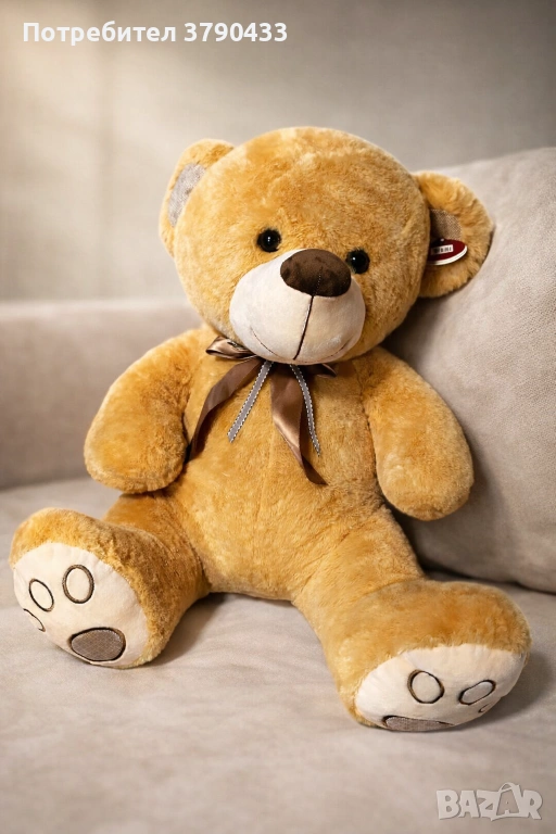 Продавам голям плюшен мечок в отлично състояние, почти не е използван.