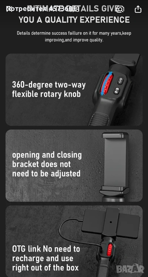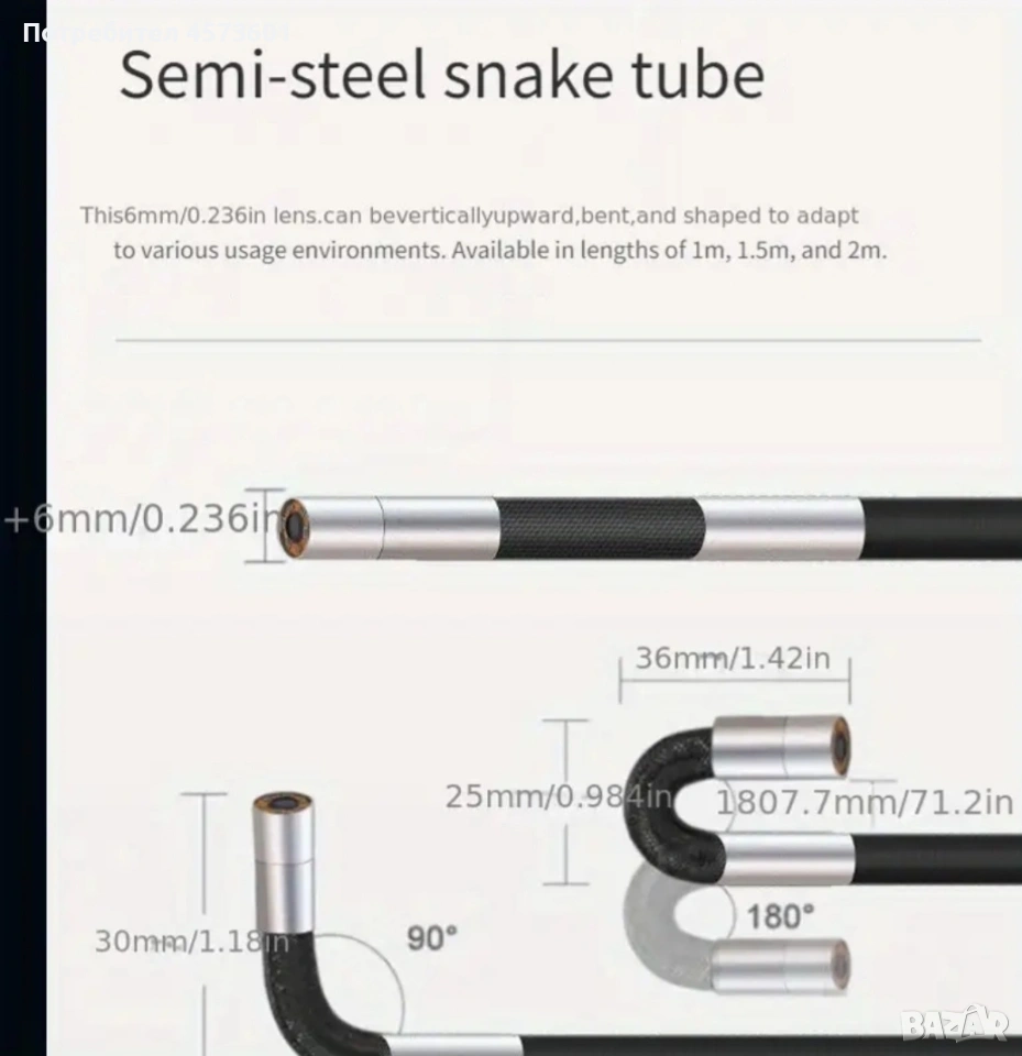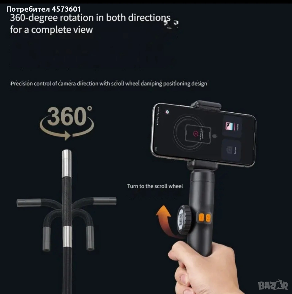 1pc 360° въртящ се промишлен ендоскоп за смартфон, 1440p HD видео инспекционна камера, USB захранване, водоустойчив, съвместим с устройства Apple и Android, диагностичен инструмент за автомобили, тръбопроводи и др. Диаметр на камера - 6мм! Цена комплект - 45 евро