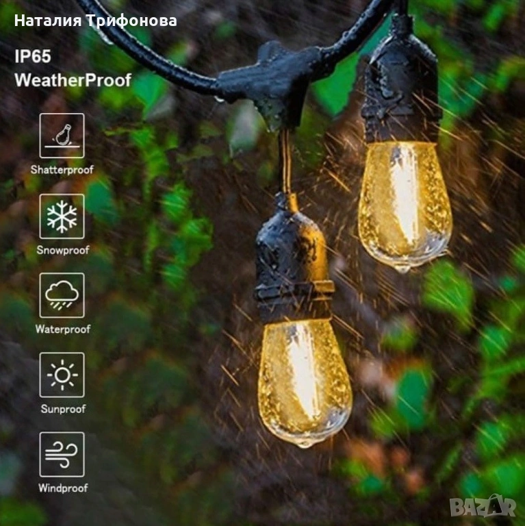 Водоустойчив гирлянд за външно осветление с 10 броя LED крушки
