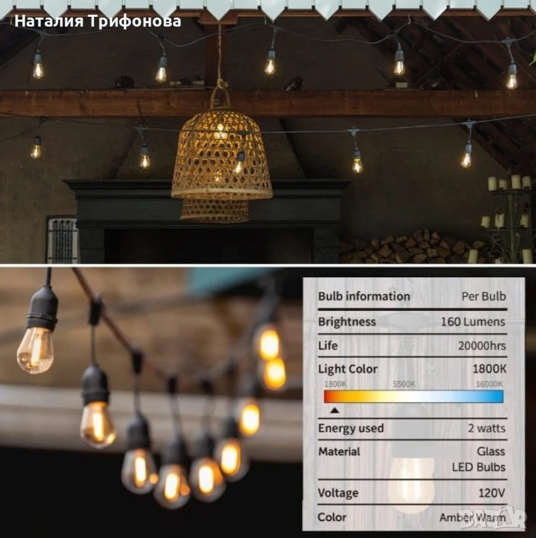 Гирлянда се състои от 10 нечупливи Led крушки, топъл цвят.