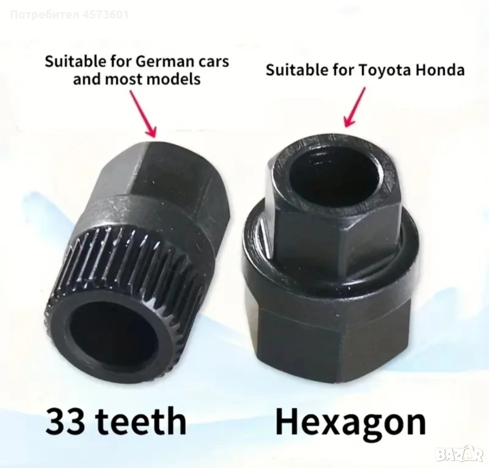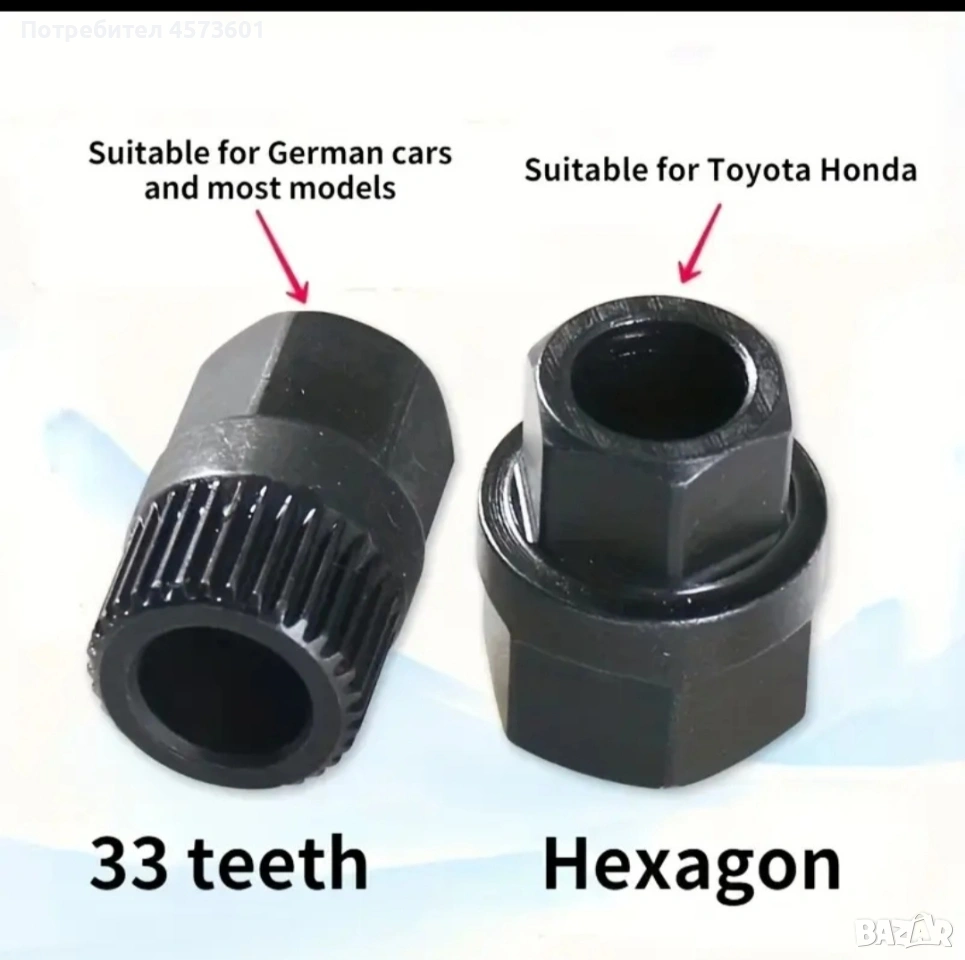 Комплект от 2 бр вложки за сваляне на ремъчни шайби на алтернатори., снимка 1 - Аксесоари и консумативи - 54090398 Комплект от 2 бр вложки за сваляне на ремъчни шайби на алтернатори., снимка 2 - Аксесоари и консумативи - 54090398 Комплект от 2 бр вложки за сваляне на ремъчни шайби на алтернатори., снимка 3 - Аксесоари и консумативи - 54090398 Комплект от 2 бр вложки за сваляне на ремъчни шайби на алтернатори., снимка 4 - Аксесоари и консумативи - 54090398 Комплект от 2 бр вложки за сваляне на ремъчни шайби на алтернатори., снимка 5 - Аксесоари и консумативи - 54090398 Комплект от 2 бр вложки за сваляне на ремъчни шайби на алтернатори., снимка 6 - Аксесоари и консумативи - 54090398 Комплект от 2 бр вложки за сваляне на ремъчни шайби на алтернатори., снимка 7 - Аксесоари и консумативи - 54090398 Комплект от 2 бр вложки за сваляне на ремъчни шайби на алтернатори., снимка 8 - Аксесоари и консумативи - 54090398 Комплект от 2 бр вложки за сваляне на ремъчни шайби на алтернатори., снимка 9 - Аксесоари и консумативи - 54090398 Комплект от 2 бр вложки за сваляне на ремъчни шайби на алтернатори., снимка 10 - Аксесоари и консумативи - 54090398 Комплект от 2 бр вложки за сваляне на ремъчни шайби на алтернатори., снимка 11 - Аксесоари и консумативи - 54090398 Комплект от 2 бр вложки за сваляне на ремъчни шайби на алтернатори., снимка 12 - Аксесоари и консумативи - 54090398 1/12