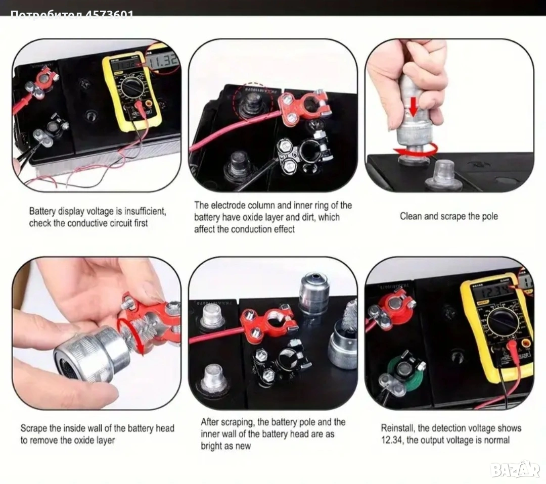 Четка за обслужване на акумулатори и акумулаторни кабели. 1 бр. четка за почистване на кабели на акумулатор на автомобил за премахване на мръсотия и корозия, ръчен инструмент за почистване на проводници на акумулатор на автомобил Цена 5 евро.